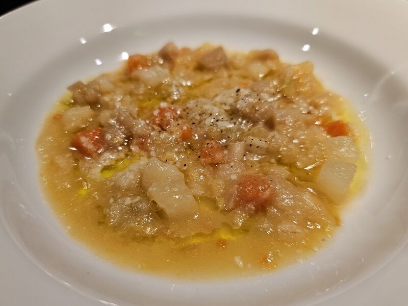 最初の1品め、これは何だ?と思ったら、温かいスープでした。