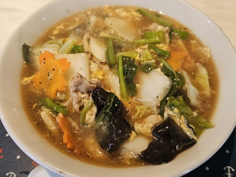 スーラータンメンって、かきたまと細切りのタケノコ・・・ ってイメージだったんですが、こちらはこんなに具だくさん!