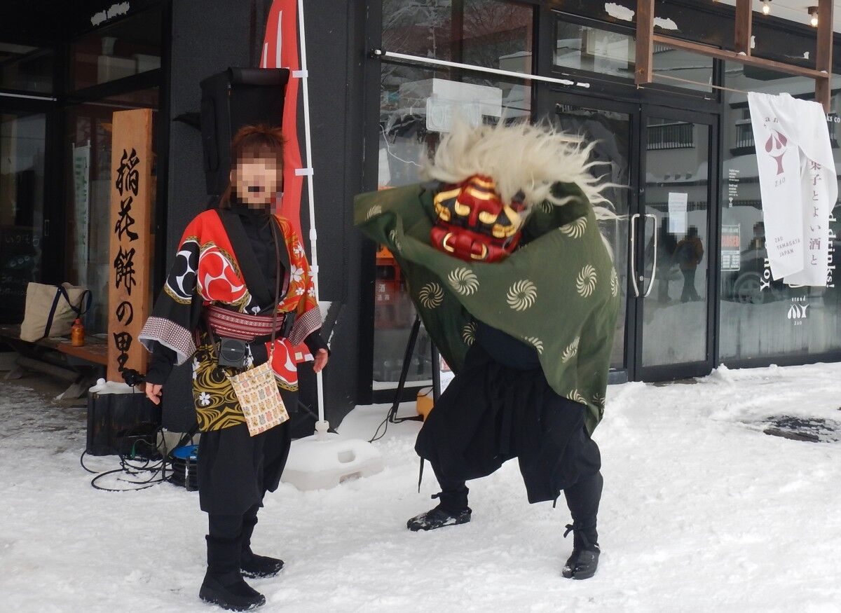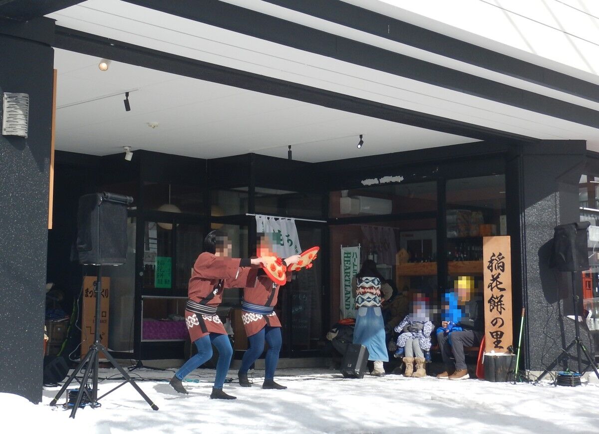 獅子舞や花笠踊りの催しがあり、観光客を楽しませていました。