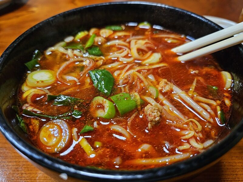 鄭さんいわく、この辛いラーメンを食べると次の日はスッキリと体調がよくなってる、と。