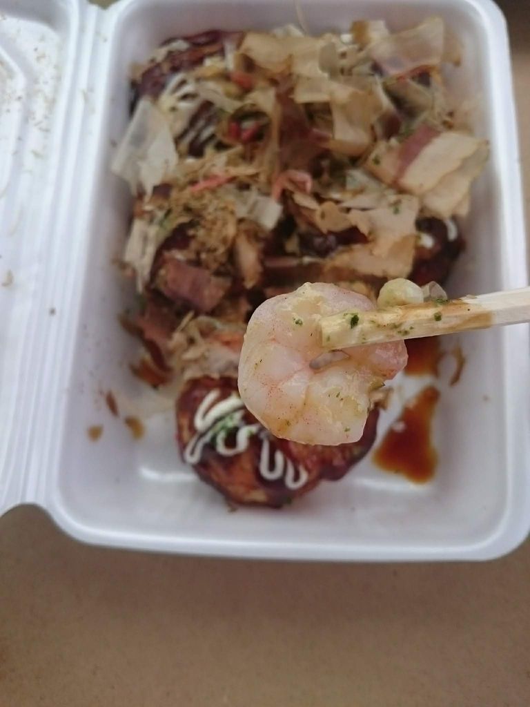 食べてみるとダシの風味が効いた生地が美味しい(๑´ڡ`๑)。プリッとしたエビがちょうどよいアクセントになっています。