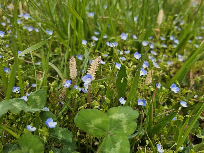オオイヌノフグリと、クローバーと、つくし。