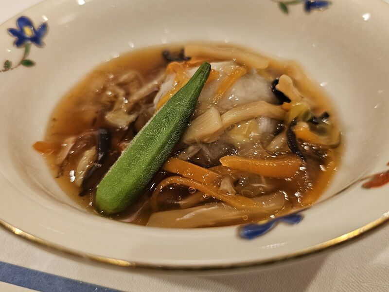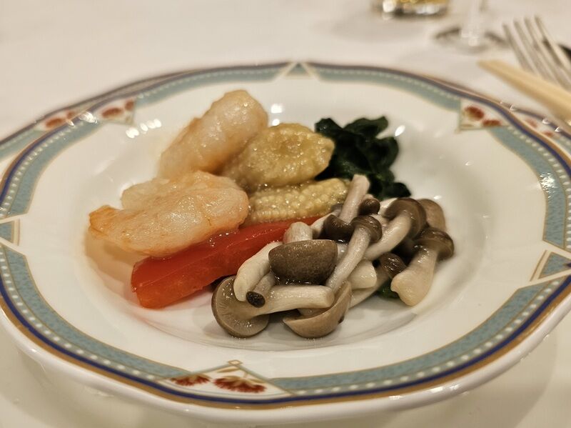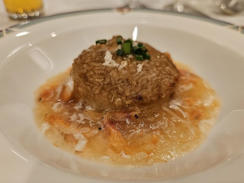 今回は焼きおにぎりのようなごはんにとろみのついた海老のスープがかけてありました。