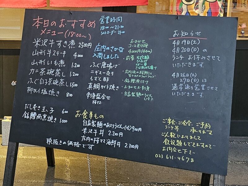 そんなことを思いつつ七日町大通りを歩いていたのですが、れんげ草さんの前にオススメのボードが出てました。