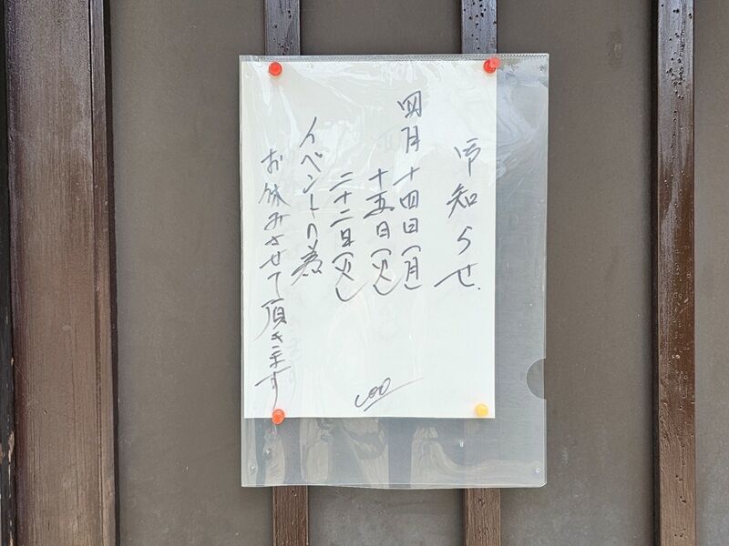 4月22日。なんとイベントのため臨時休業か。