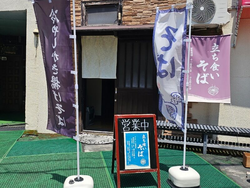 前回は温かい蕎麦しかなかったけど、もしかして冷たいものもやってくれてたら嬉しいなーと思いながら歩いてきたんですが、なんか幟に「冷やし」って文字があるような!