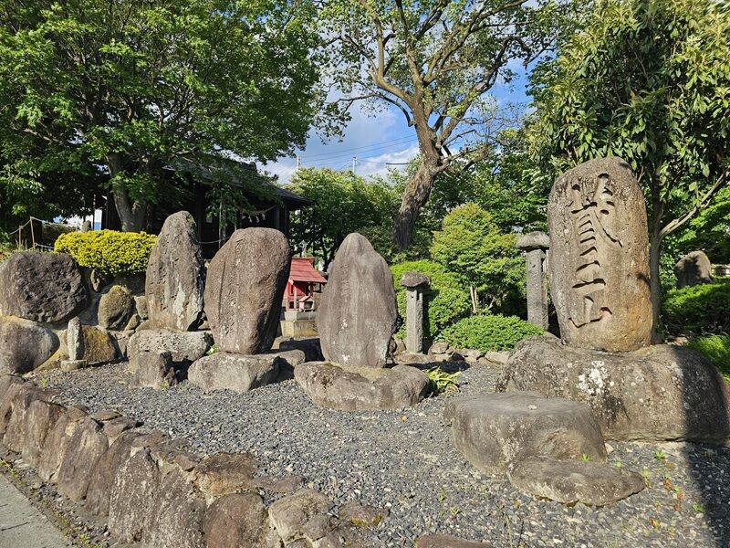 境内には昔からの石碑を集めて並べてあるんでしょうか。境内の際に一列に配してあります。