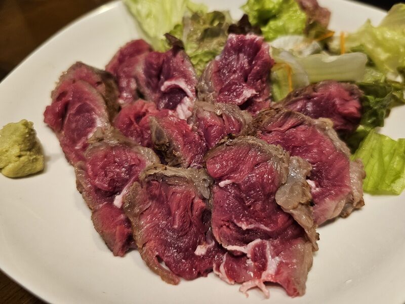 でもこのお肉にワサビをのせて、ちょっと甘めのタレにつけて食べたら・・・