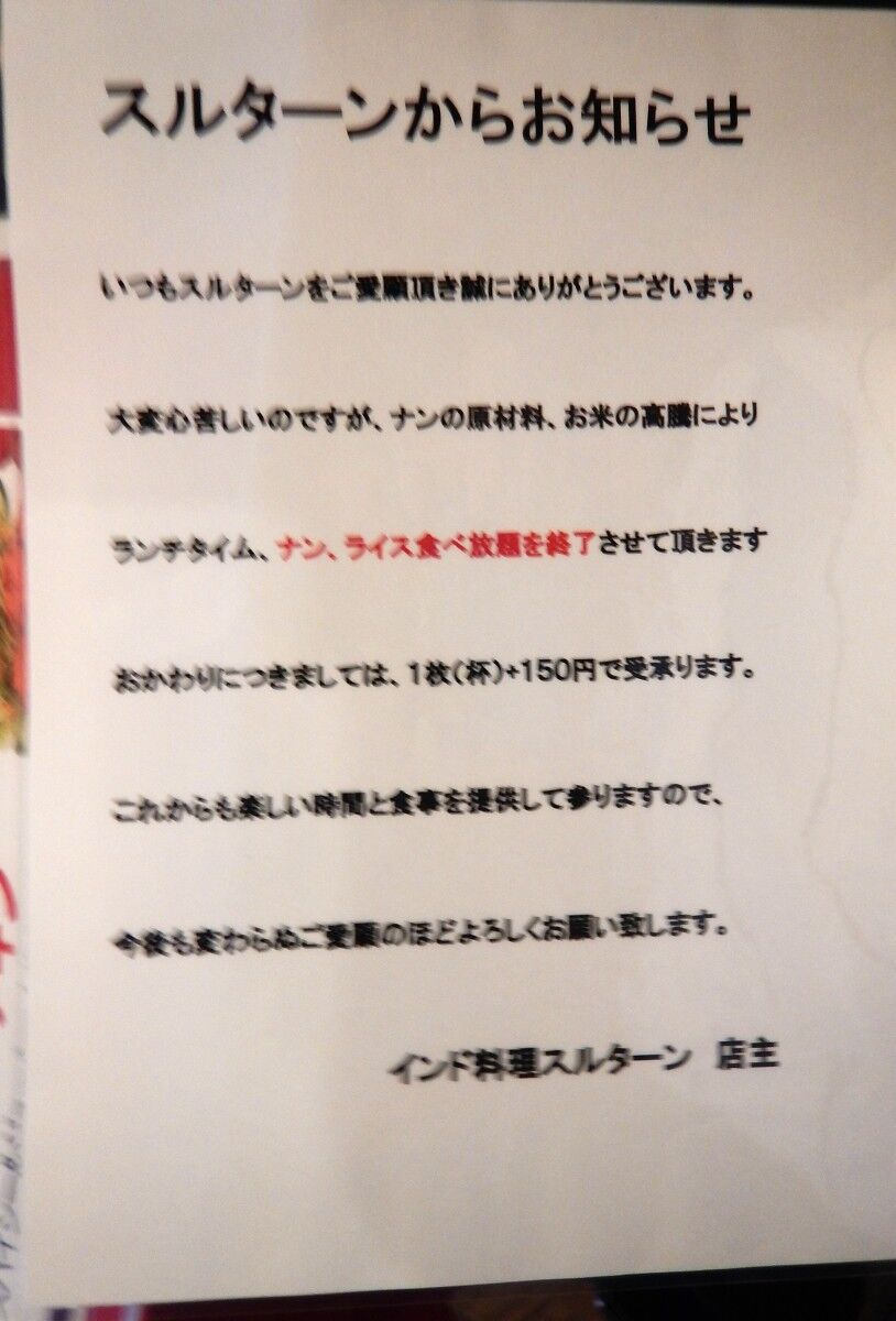 もとのWEBサイトでこの記事を読む→天童市 スルターン ランチのナン食べ放題終了
