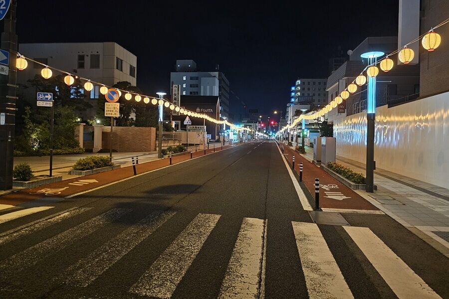 駅前の大通りにもこの提灯が並んで設置されてるんですよね。