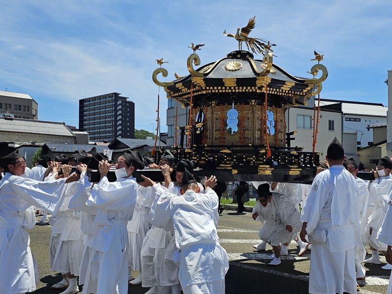 塩竈神社と志波彦神社、その2つの神社のお神輿が街なかを練り歩き、海を渡るためにみなとオアシス・マリンゲート塩釜を目指します。