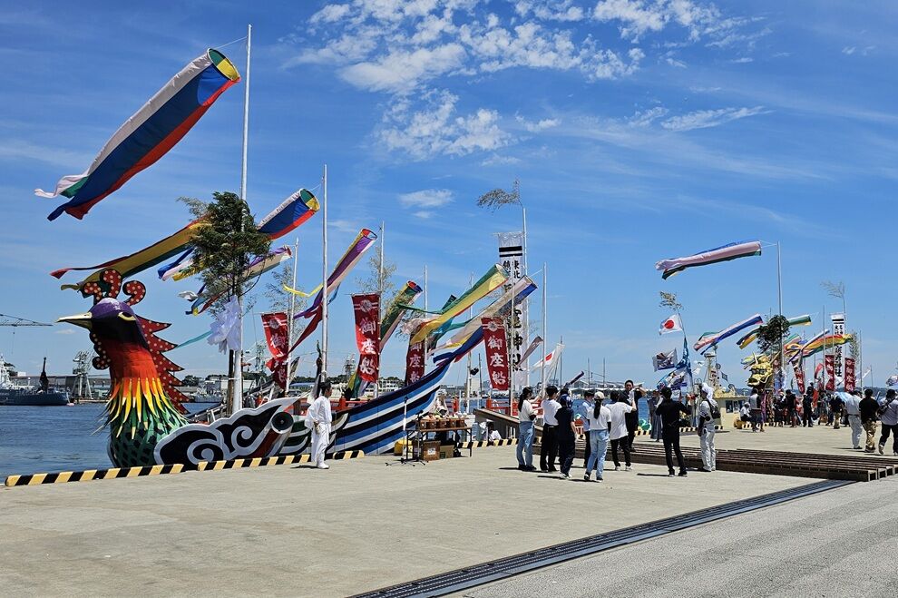 マリンゲートの船着き場には、鳳凰丸と龍鳳丸の2隻がお神輿の到着を待ってました。