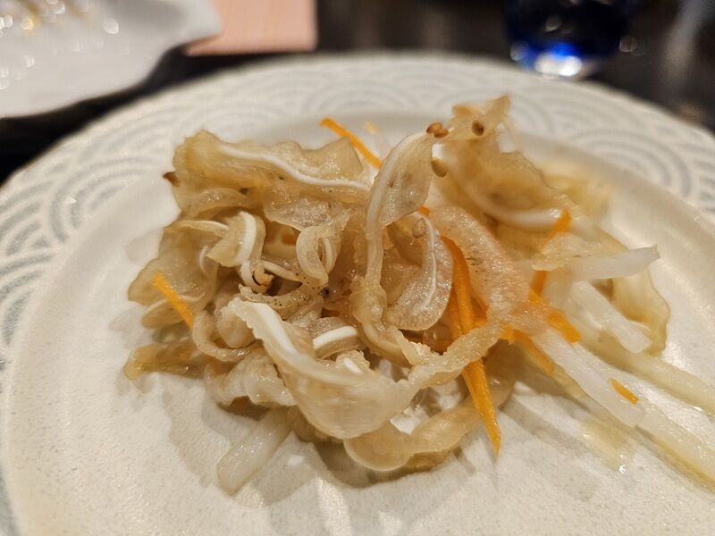 ミミガーなんかも取り分けしてくれてるお友だちから届くんですけど、このミミガーも大皿でどういう形で届いていたのか、原型はわかりません 笑