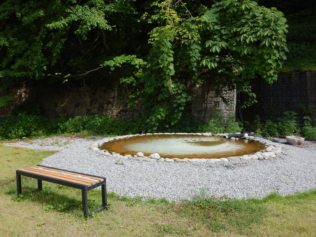 その奥には広場揚が有り、源泉が貯められた泉もあります。
