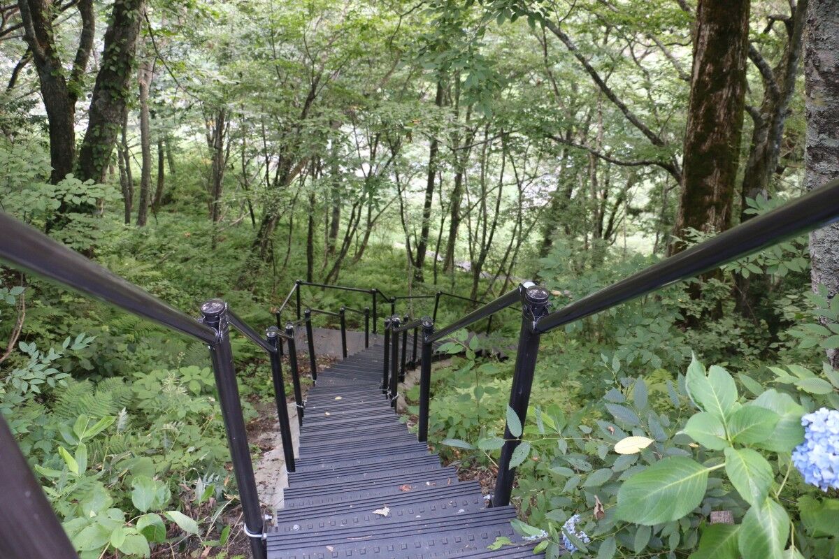 滝への途中までは新しい階段があります。