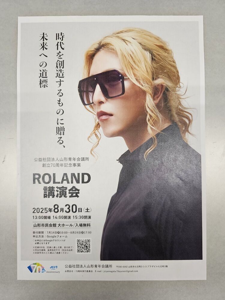 その名言で知られるローランド氏。僕のお友だちがなんと直接お会いしたことがあって、「とってもシャイな方」と言ってましたが、そんなローランド氏の講演が無料で聞けると!この講演会を企画した山形青年会議所さんの企画力に拍手。