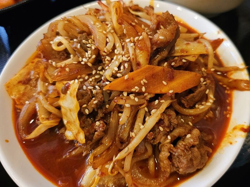 プヨ定食のメインは牛プルコギ炒め。