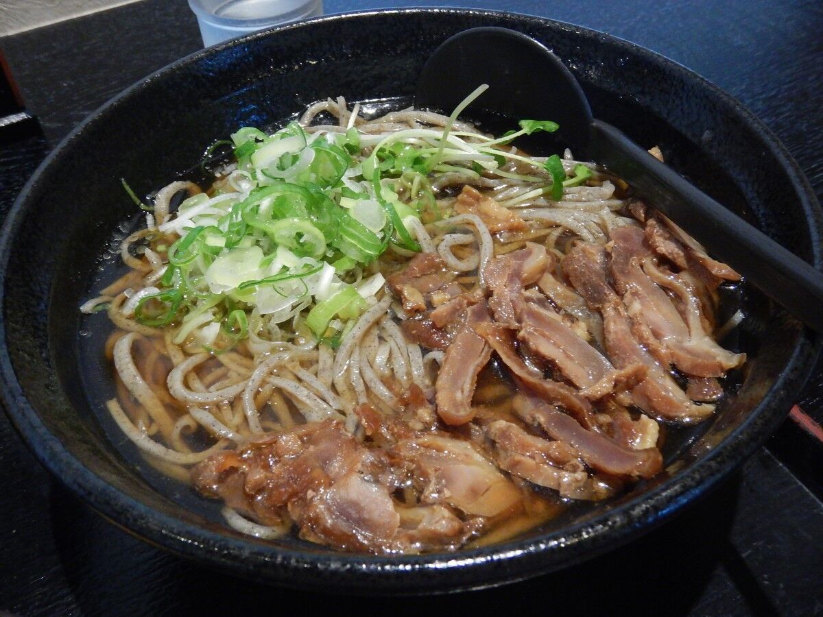 肉そばはキリッと冷えてそばのコシが引き立っています。