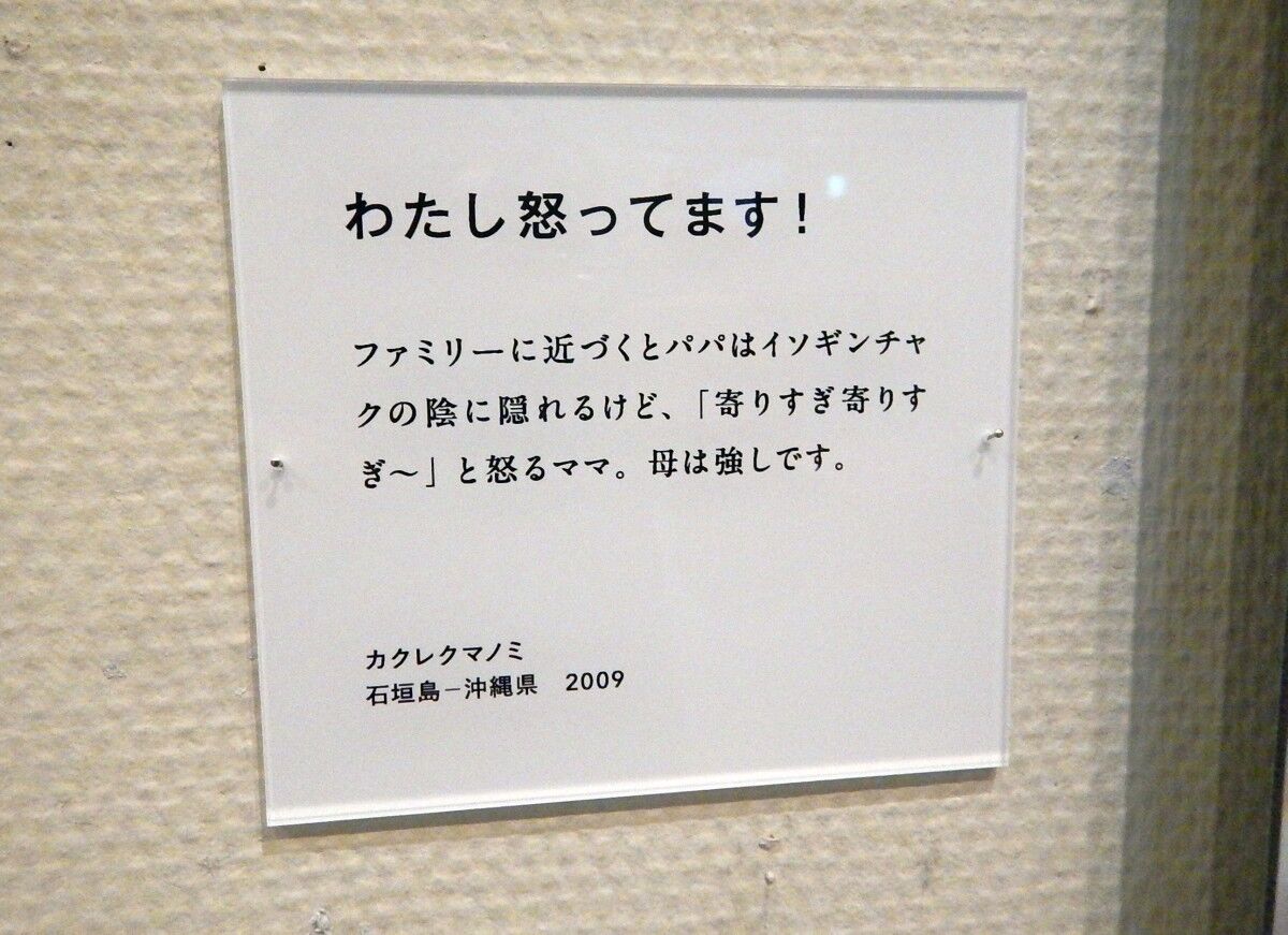 壁にずらりと写真が並び、1点1点にタイトルと種類、コメント付き。