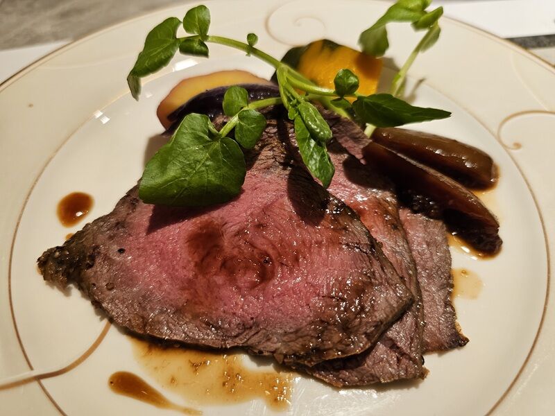 続いての肉料理は、A5ランク山形牛のローストビーフ。