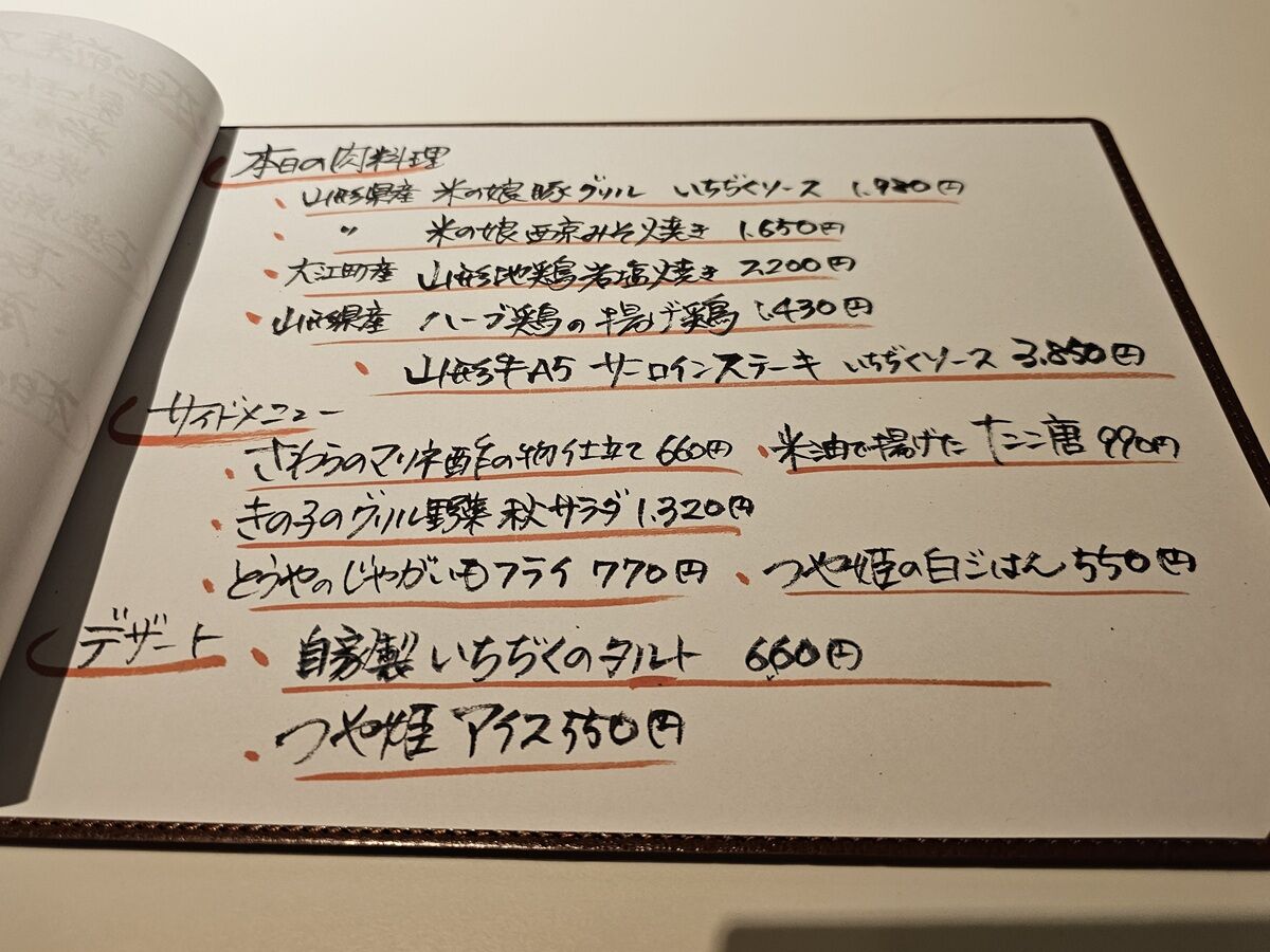 山形を主として、近隣の食材を多く使った料理を提供していただけるというのは嬉しいところ。
