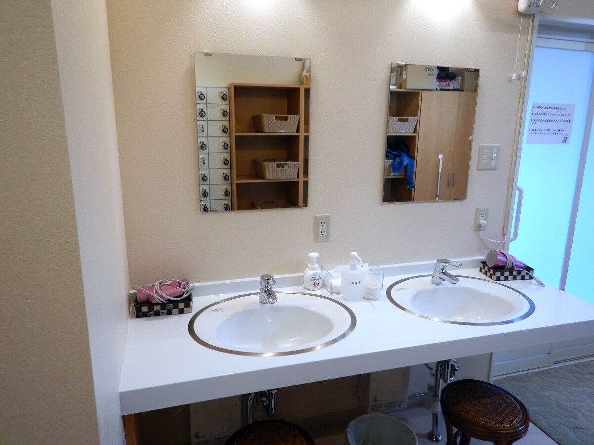 壁沿いにL字型に並んだ洗い場は数も十分に揃っていました。