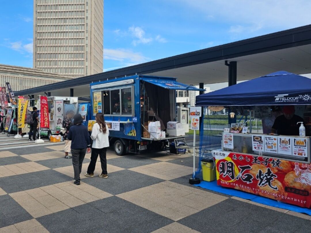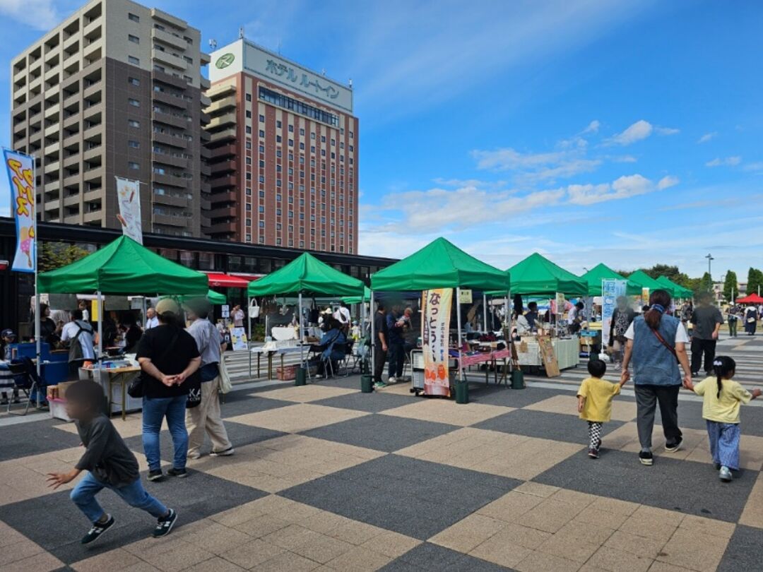 シャトルバスで駅西に帰ってくる子どもたちを迎えに来てみたのですが、県民ホール前の広場では今日もイベントをやってましたね。