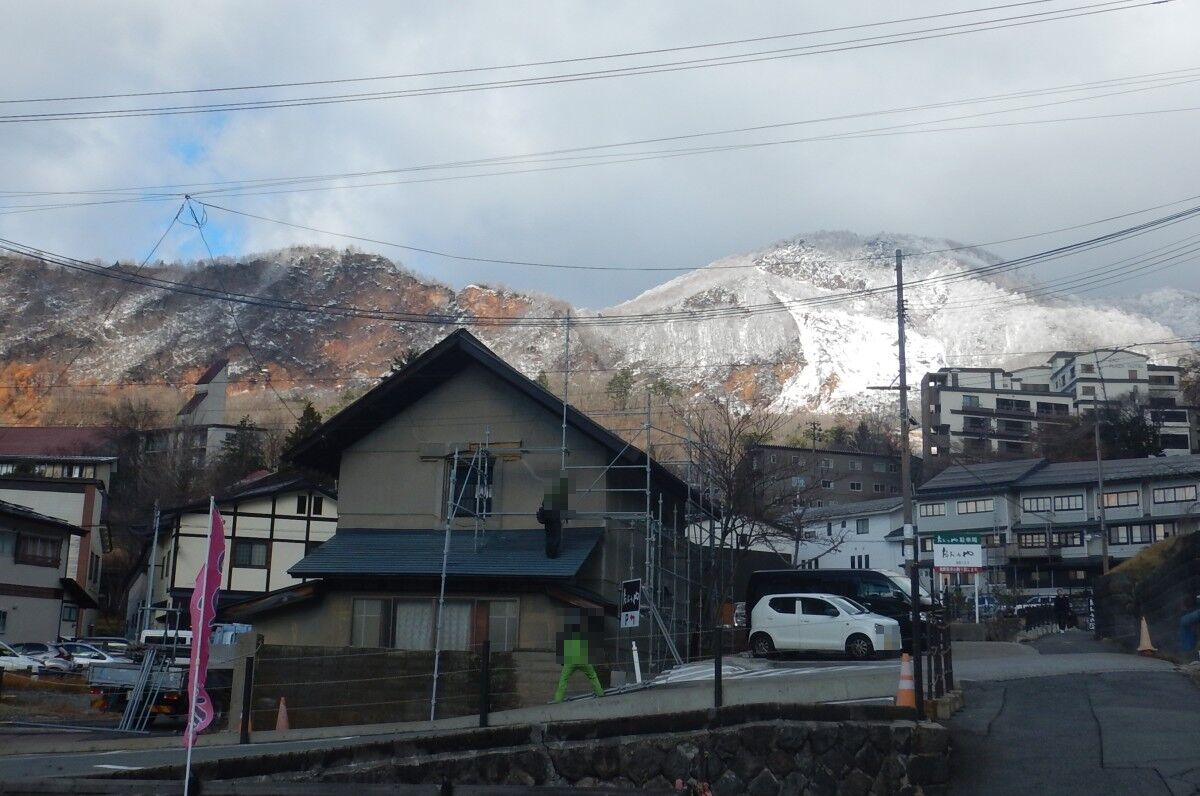 つい先月まで紅葉が見頃でしたが、遠くの山々は雪で白く染まっていました。