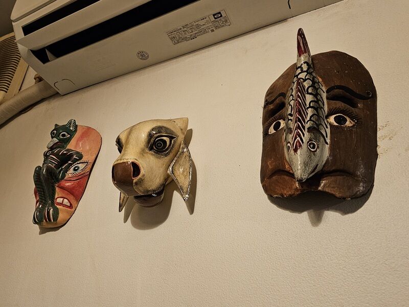 どういう意味があるのか、もしくは意味なんてないのかわかりませんが、異国情緒が感じられて雰囲気のあるお面たちでしたね。
