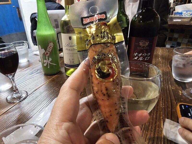 カウンターにあったおつまみを見てたら、この宮崎のササミがあったんですよ!