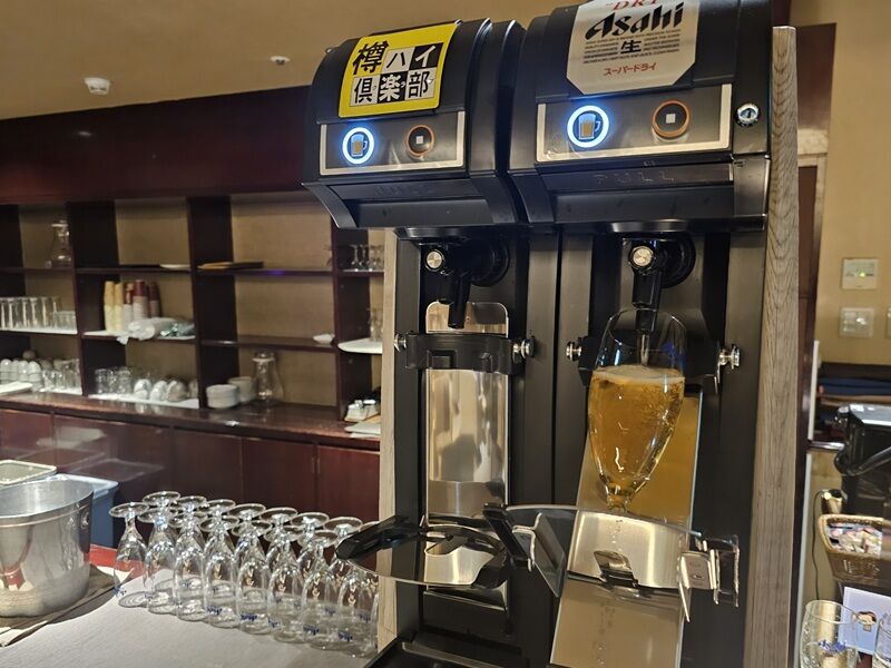ウェルカムドリンクはよく聞きますけど、ソフトドリンクのほかにこの生ビールとサワーが無料でいただけるとは。