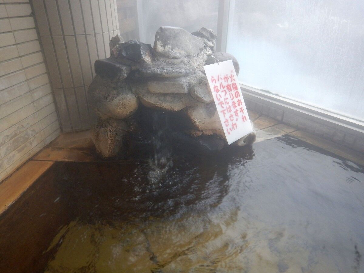底には湯の華が沈んでいますが、色が黒いので少々見た目は悪いのは残念な感じ。