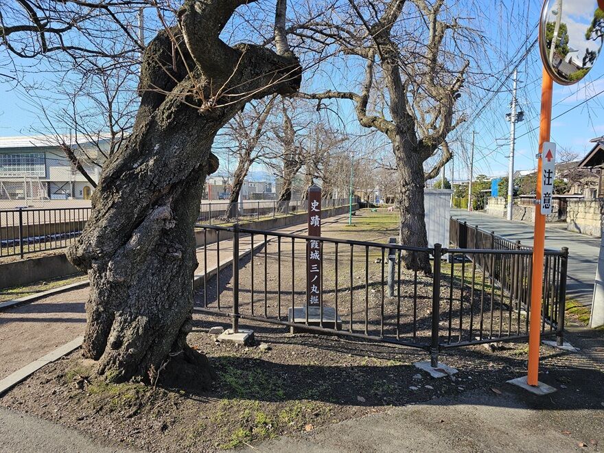 児童遊園のような場所になっていますが、ご覧のとおり、しっかり「史蹟 霞城三ノ丸堀」と書いてありました。