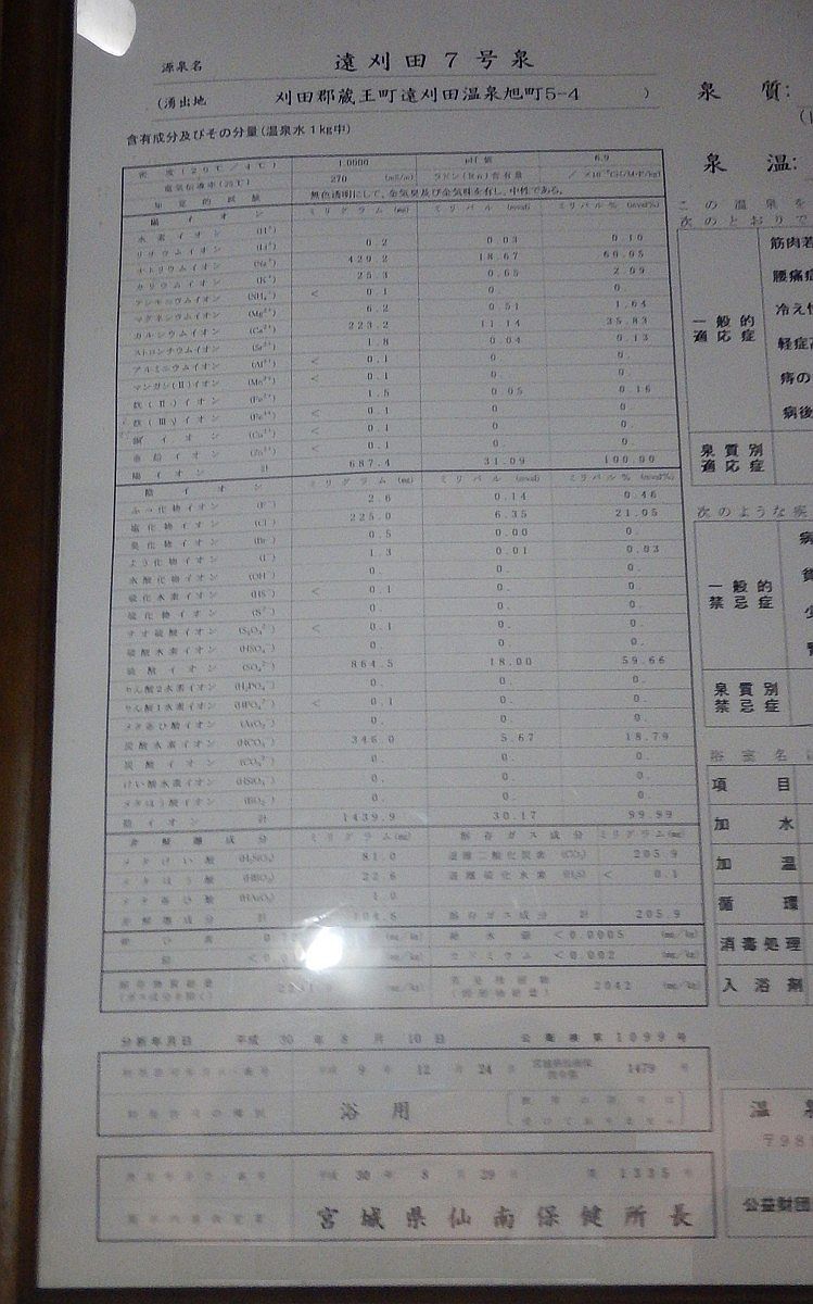 天井近くには温泉成分表。