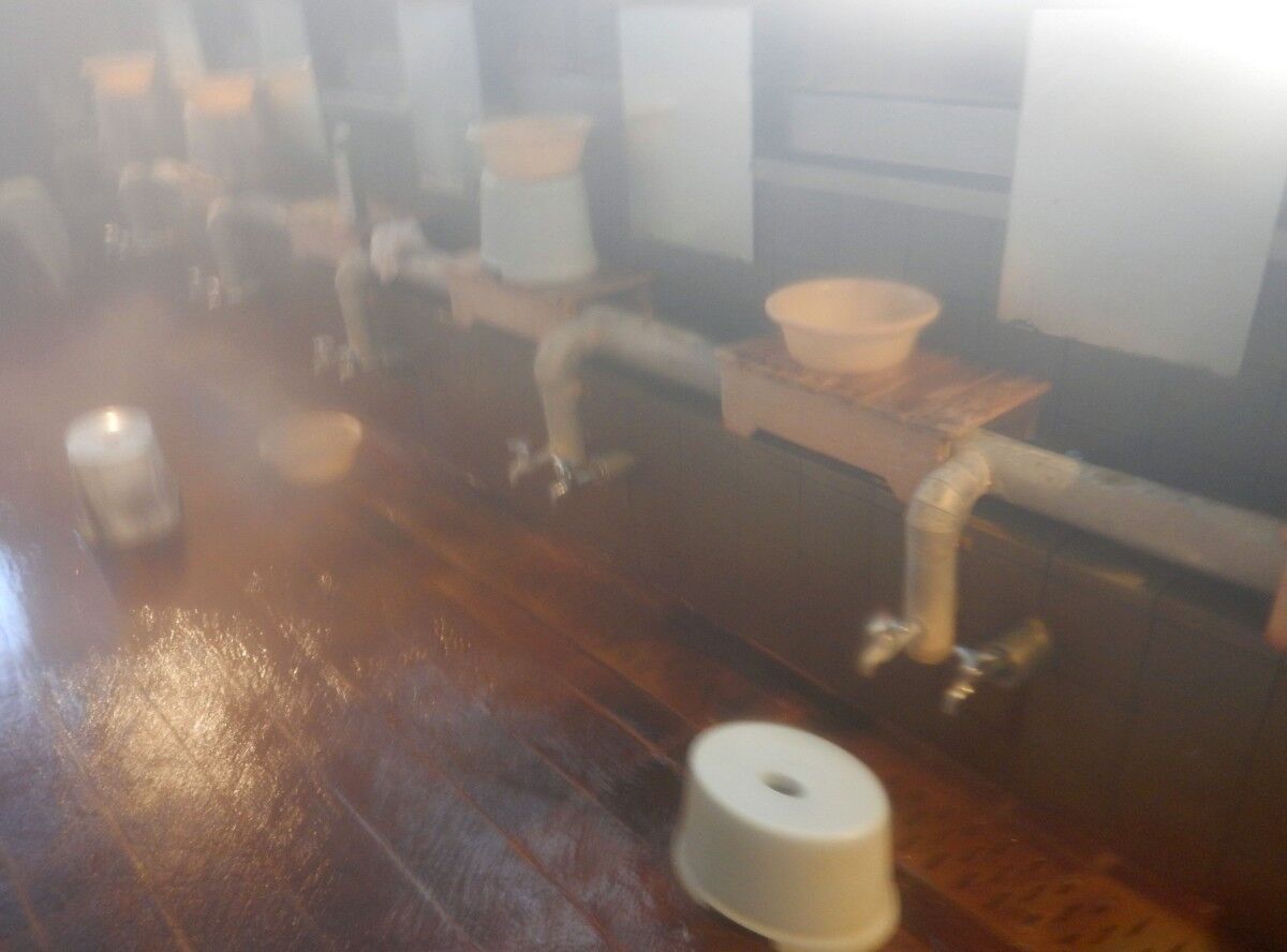 浴室は縦長の形をしており、湯舟の脇に洗い場が並んでしました。
