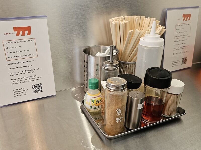 目の前には調味料がたくさん置いてあります。味変を楽しむ人は嬉しくなっちゃいますね♪