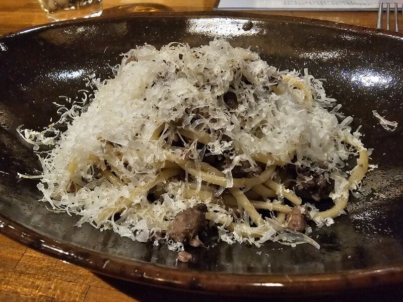 メニューには「猪の炭火焼」というものもあったんですが、実は昨日は「〆に猪のラグーソースを食べるぞ」って決めてたんですよ。今までもずっと食べたいと思いつつ、結果的に毎回おなかがいっぱいになってしまって食べられていなかった垂涎のメニュー。