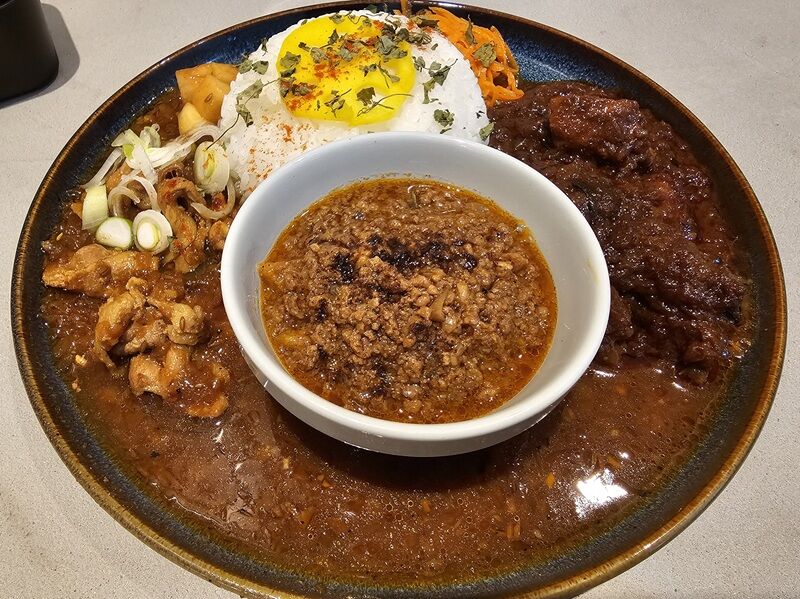 と思いきや、その甘口のカレーだけが鶏出汁のキーマカレーなんですね。