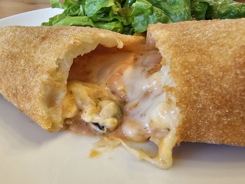 当然ながら、いつもの焼いたピッツァと揚げたものとでは生地の質感が違いますよね。
