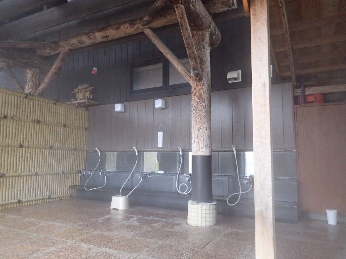 洗い場側に屋根は付いていますが、露天風呂の天井はほぼ開放状態。