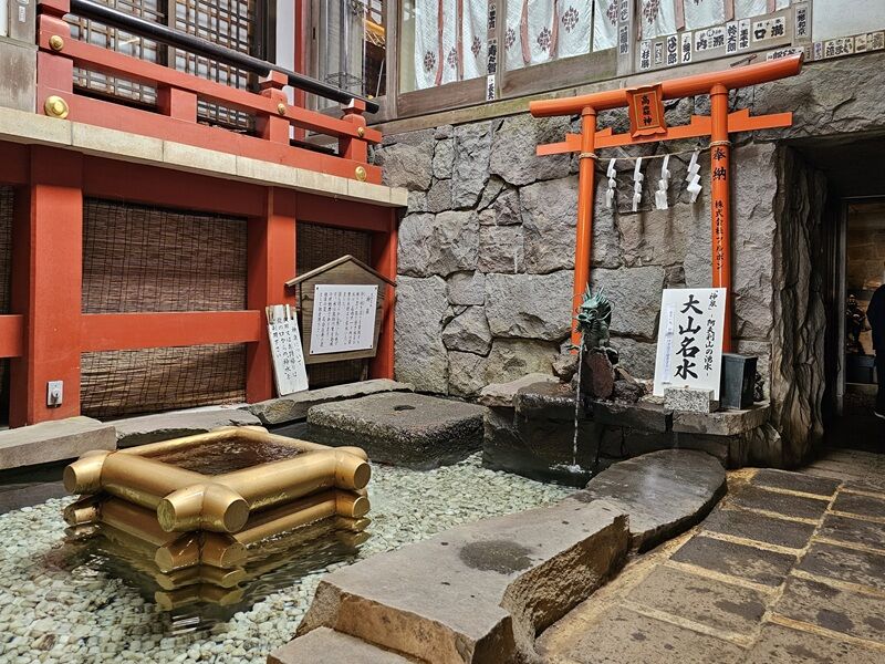 拝殿の右手から、拝殿の下を巡る順路もあるんですが、その入り口にあるのがこの大山名水。