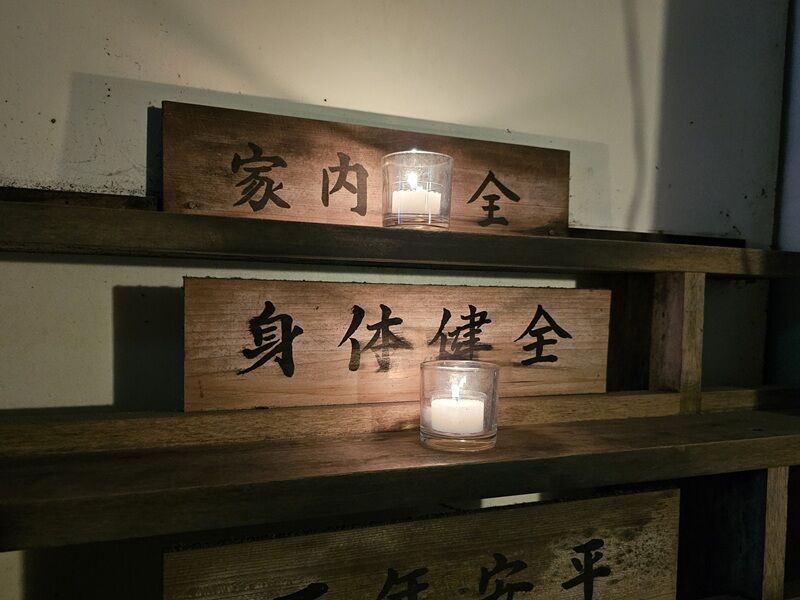僕は「家内安全」。奥さんは、いま体調を落としている子供を想って「身体健全」。