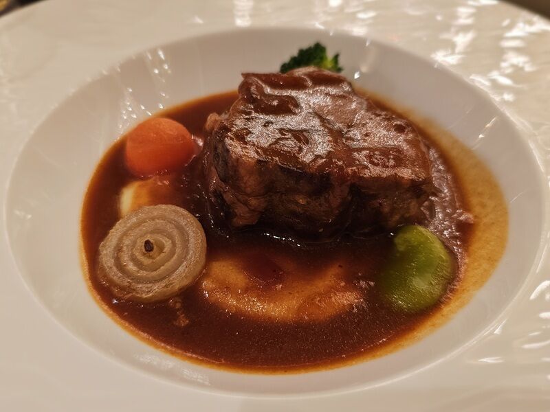 4品目は極厚のお肉。じっくりと煮込まれたお肉はほろほろとした食感でした。