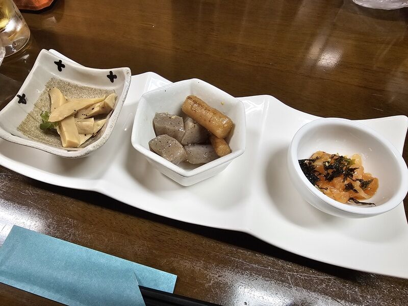お通しはこちらのお店では定番の3点盛り。