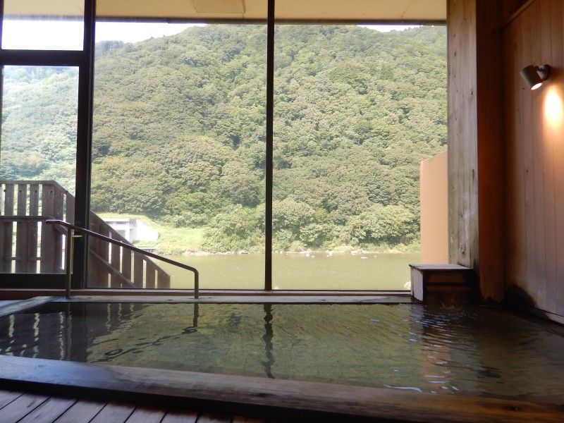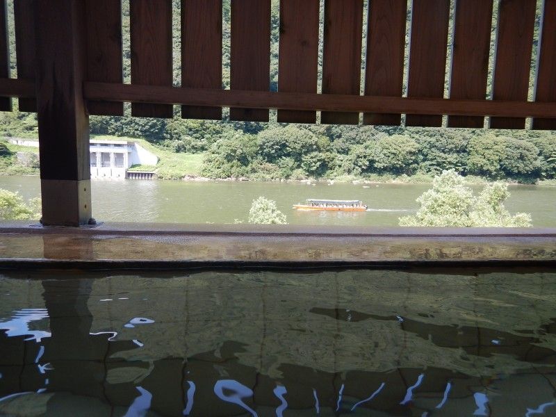 湯船に身を沈めると柵の下の隙間から最上川が見えました。