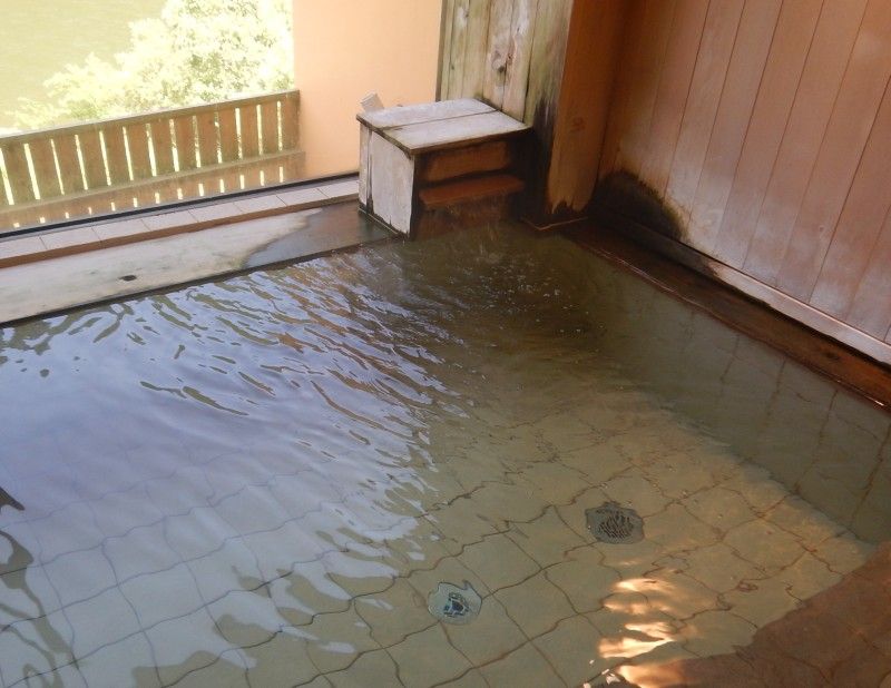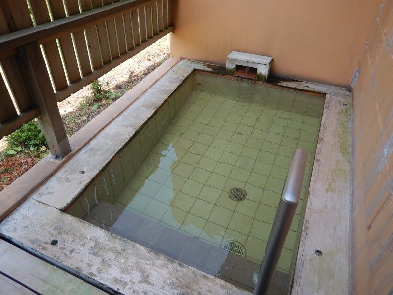 湯温は42℃と平均的ですが、外気温が30℃越えの夏季には熱く感じます。