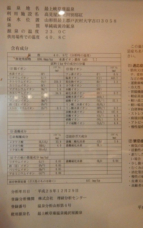 成分としては硫黄泉ですが、チオ硫酸イオンだけ高いのは珍しい気がします。