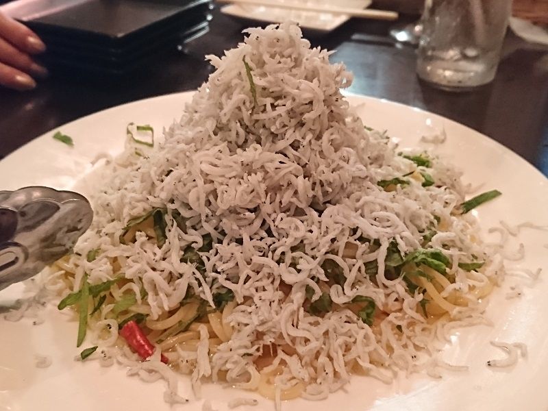 山盛りしらすのペペロンチーノは奥さんがずっと食べたがっていた一品。