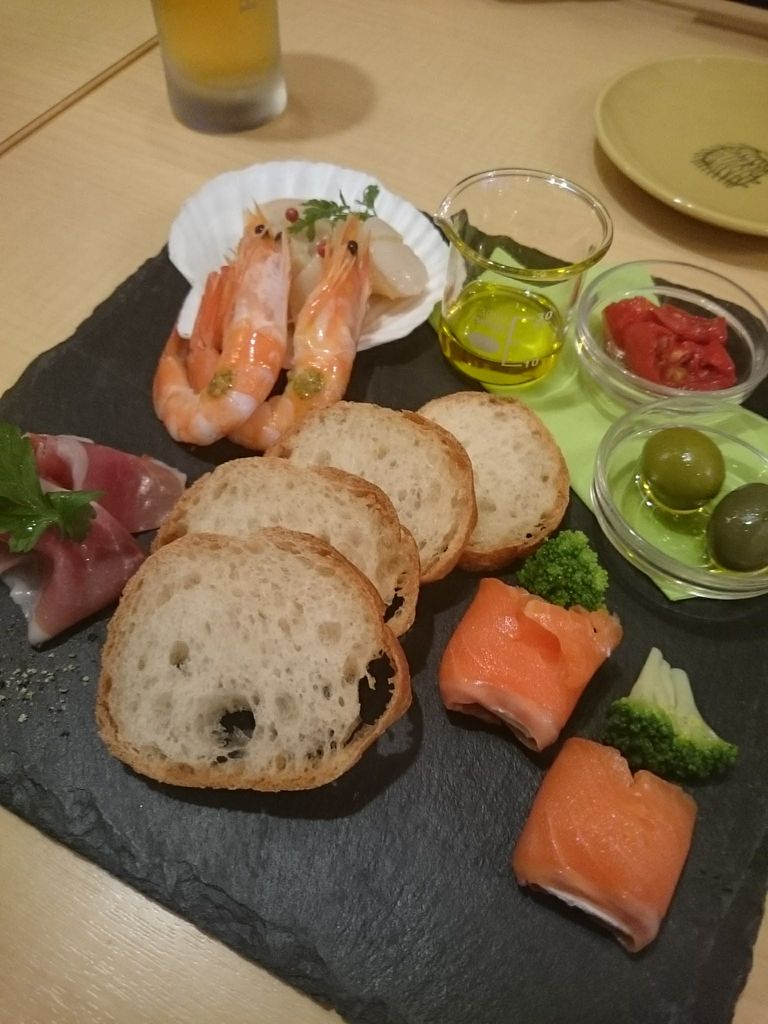 生ハムやスモークサーモンなどが並び彩りが良くて美味しそう。