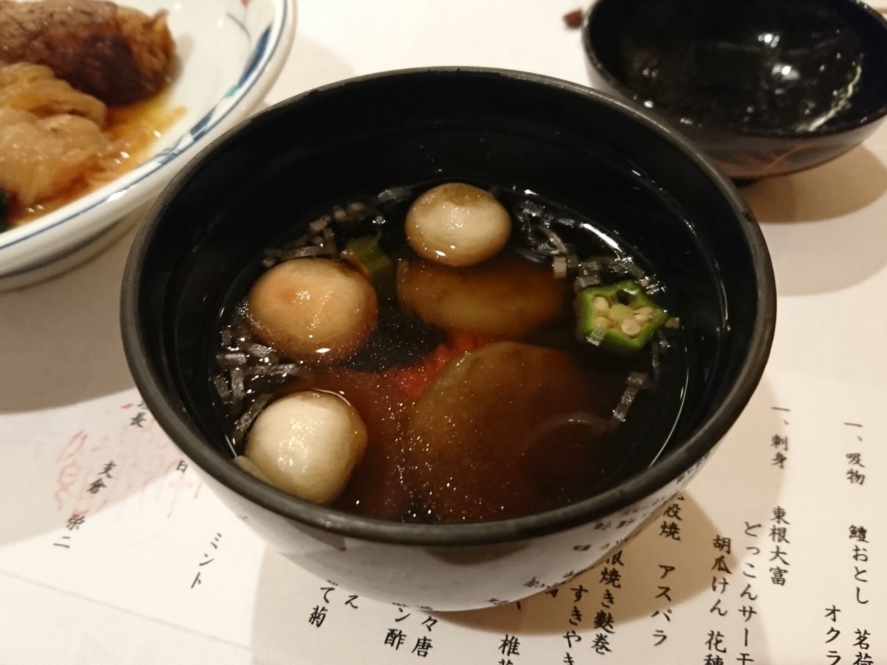 献立表のうえにお吸い物が乗ってたけど、僕もそのまま写真撮影しちゃった(笑)